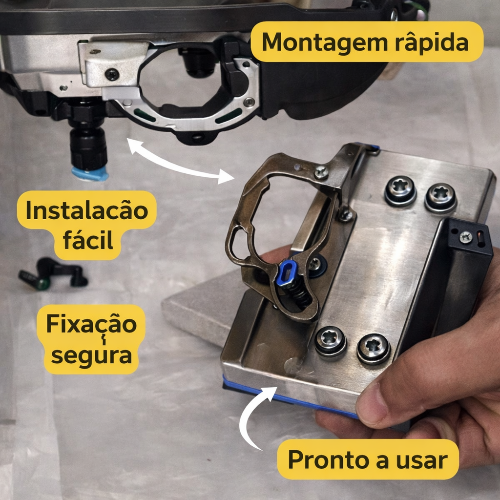 O dispositivo oferece uma base estável para a rebarbadora, eliminando vibrações e instabilidade comuns no uso manual.